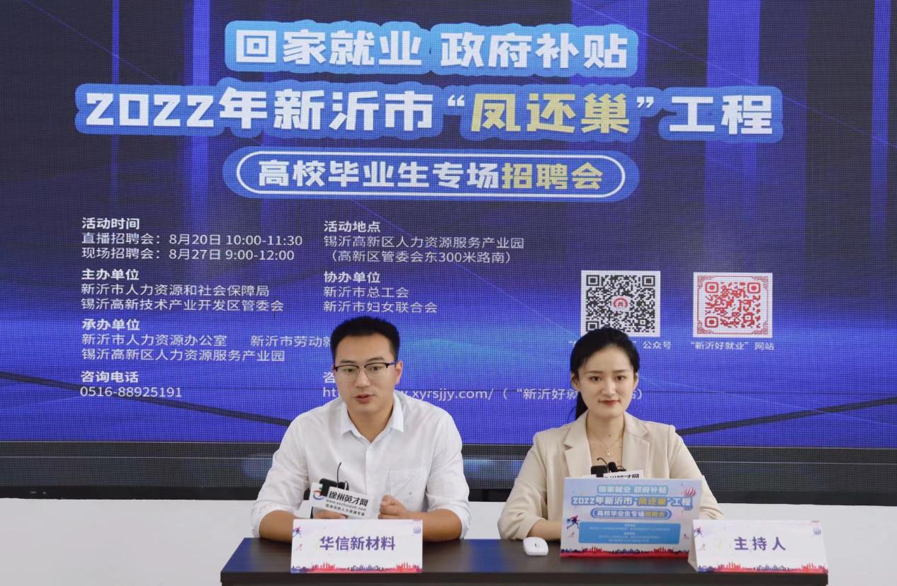8月20日,由新沂市人力資源和社會(huì)保障局、錫沂高新技術(shù)產(chǎn)業(yè)開(kāi)發(fā)區(qū)管委會(huì)主辦,新沂市人力資源辦公室、新沂市勞動(dòng)就業(yè)管理處、錫沂高新區(qū)人力資源服務(wù)產(chǎn)業(yè)園承辦的2022年新沂市“鳳還巢”工程高校畢業(yè)生專場(chǎng)直播招聘會(huì)圓滿舉行。