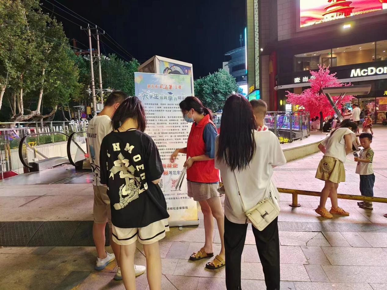 其實(shí),從7月初以來(lái),新沂市人社局就開(kāi)始利用暑期大學(xué)生返鄉(xiāng)的有利時(shí)機(jī),成立10人就業(yè)服務(wù)團(tuán)隊(duì),每周五、周六晚上在沭河之光、漢錦城商圈、吾悅廣場(chǎng)等市民納涼散步較多的點(diǎn)位常態(tài)化開(kāi)展就業(yè)政策和企業(yè)招聘崗位宣傳活動(dòng),為求職者和企業(yè)建立實(shí)時(shí)暢通的溝通橋梁。兩個(gè)月來(lái),共開(kāi)展常態(tài)化政策、就業(yè)宣傳20次,發(fā)放宣傳扇5000把,精準(zhǔn)匹配求職者2000余人,充分展現(xiàn)公共就業(yè)服務(wù)機(jī)構(gòu)的情懷。